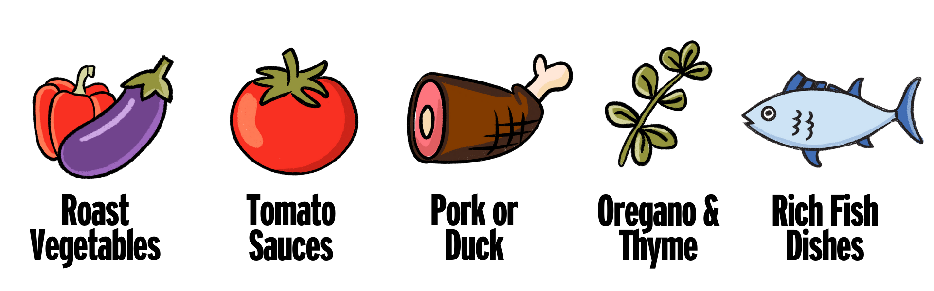 This is a great food pairing wine! You can really with its fruity character, savoury tones, refined tannins and lighter frame in so many ways. The red fruits of Nerello work similarly to the red fruits of Sangiovese, and pair wonderfully with tomatoes, capsicum, eggplant and the like. Thanks to its high acidity, you can feel confident pairing with tangy flavours and tomato bases sauces too. Its lightness, precision and delicate florals work similarly to Pinot Noir. So lighter pork dishes work well, as does confit duck, and even richer fish dishes, like sardines and mackerel. When it comes to seasoning and spices, you can't go wrong with herbs like oregano, thyme, as well as anise and sage. A real pairing playground!
