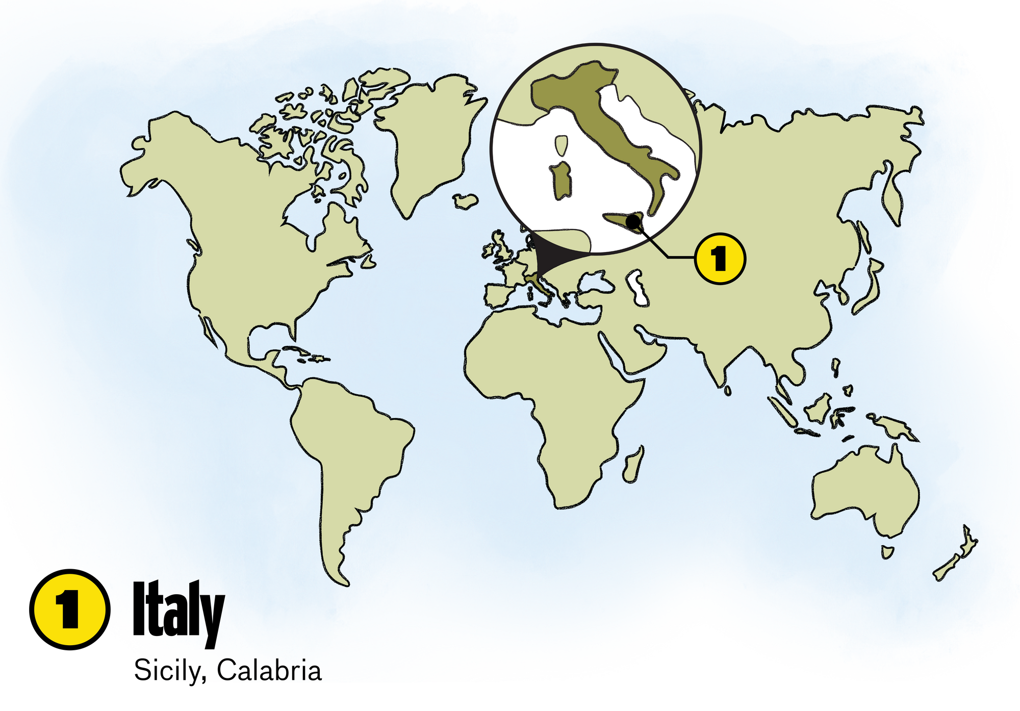 The island of Sicily is ground zero for this wonderful grape, with over 80% of all global plantings. Here you'll most often see it labelled Etna Rosso DOC or Faro DOC — these are the highest quality.