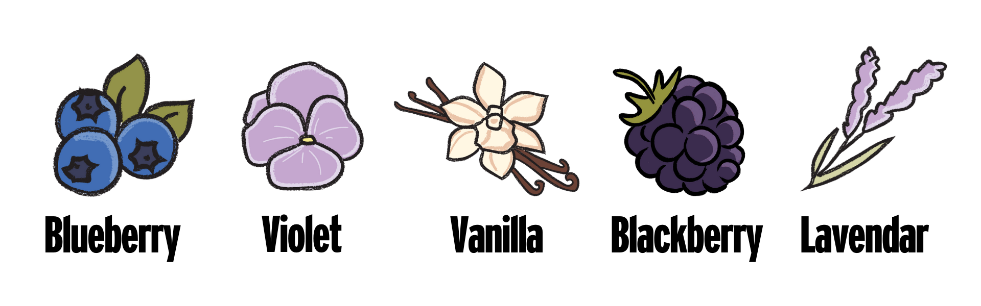 Touriga is dominated by dark fruits, often a mix of blueberry and blackberry. It's always floral, so look out for notes of violet or lavender. It also takes oak well, so will often have a waft of vanilla over the fruit.
