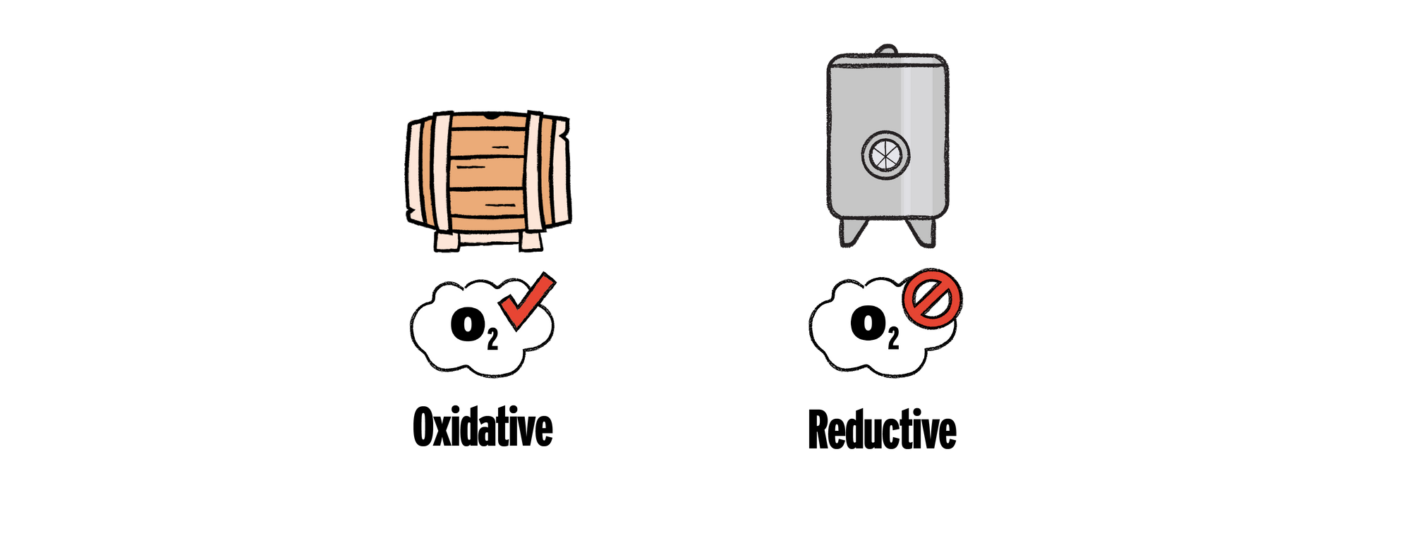 Most fresh white wines will be managed reductively. This is the polar opposite of oxidation - zero oxygen allowed. Richer whites like oak-aged Chardonnay is handled oxidatively.