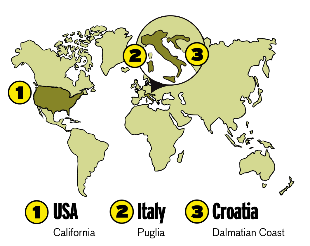 So, Zinfandel in the USA, Primitivo in Italy and Crljenak Kaštelanski in Croatia - they're one and the same.